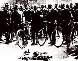 1931, arrivée des randonneurs allure libre |